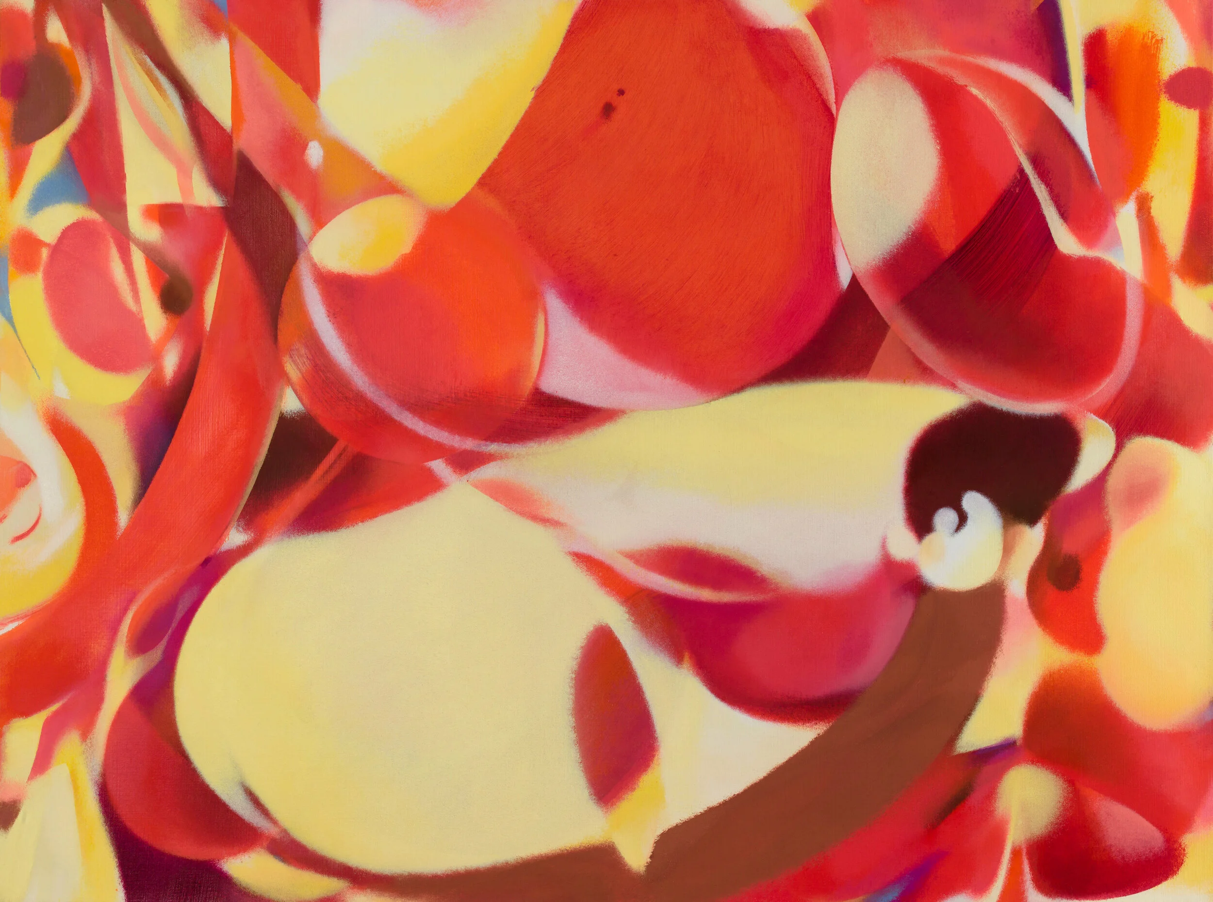 The paintings are an extension of my interest in vision and visual perception. The six major groups of work completed to date have been produced with these themes in mind. The individual nature of each group presents a shift in the emphasis and focus on perception in the context of painting. The five previous groups include Perceptual Fields, structuring large full surfaces in low relief utilizing afterimages and illusion; Prisoner's Cinema, the sometimes hallucinatory images seen in spaces of prolonged darkness; Second Nature, works with a more figural turn with an emphasis on the nexus of languages; Shape of Vision, personal intuited images that feature a process of working from the inside out; and the Icon series, based on the iconic replica, the tiny inverted image in the back of the retina, a phase in the process of seeing. The most recent group completed is titled the Oculus cycle. Through this journey I have gone from a deeply embedded surface to one of painterly flatness, reversing a process of working from "the outside in" to "the inside out" ultimately achieving some sort of balance between inside and outside, and to painted objects of a greater depth and complexity.