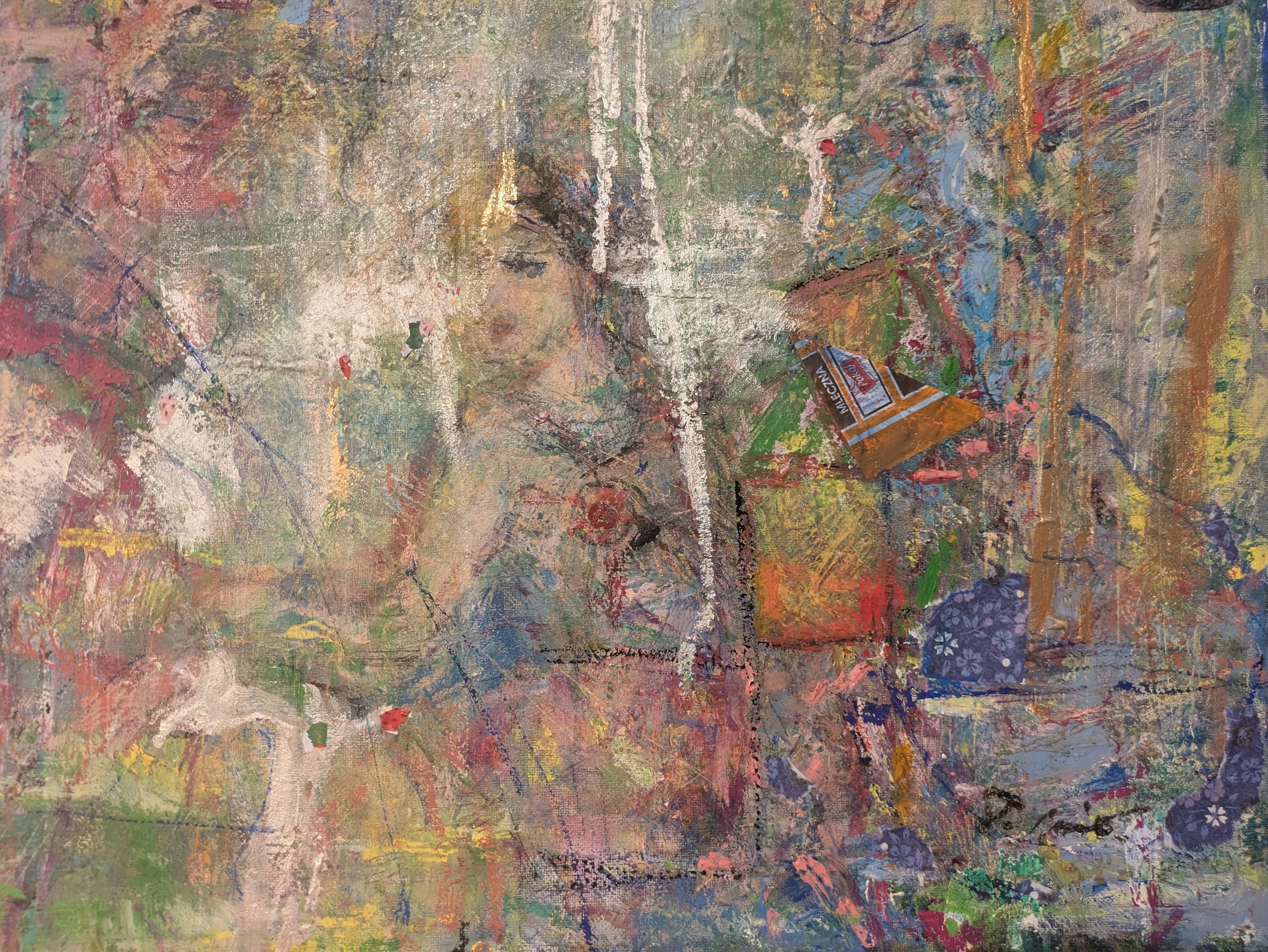 Blessed Rain - My luggage is about to fall off my bike. A blessing rains down from the heavens. I feel relieved. mixmedia on canvas F8