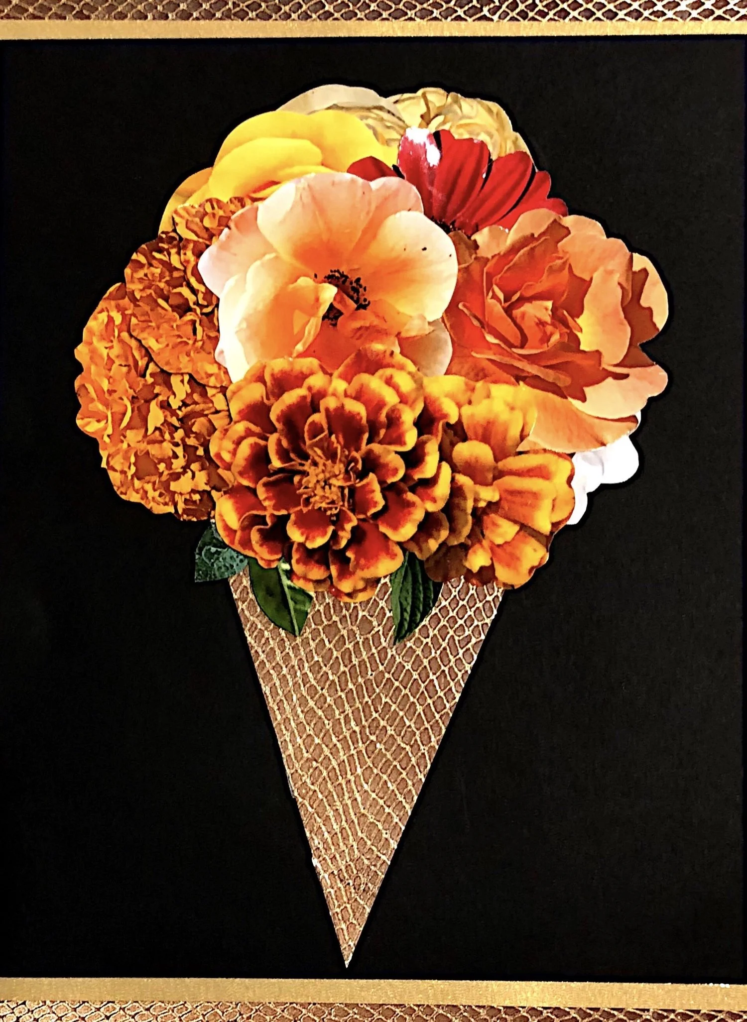 Art allows me an avenue to express my hope for the world. I am a collage artist, focusing on floral compositions, because flowers symbolize my enthusiasm for using color to bring about large-scale positive changes, starting from within.