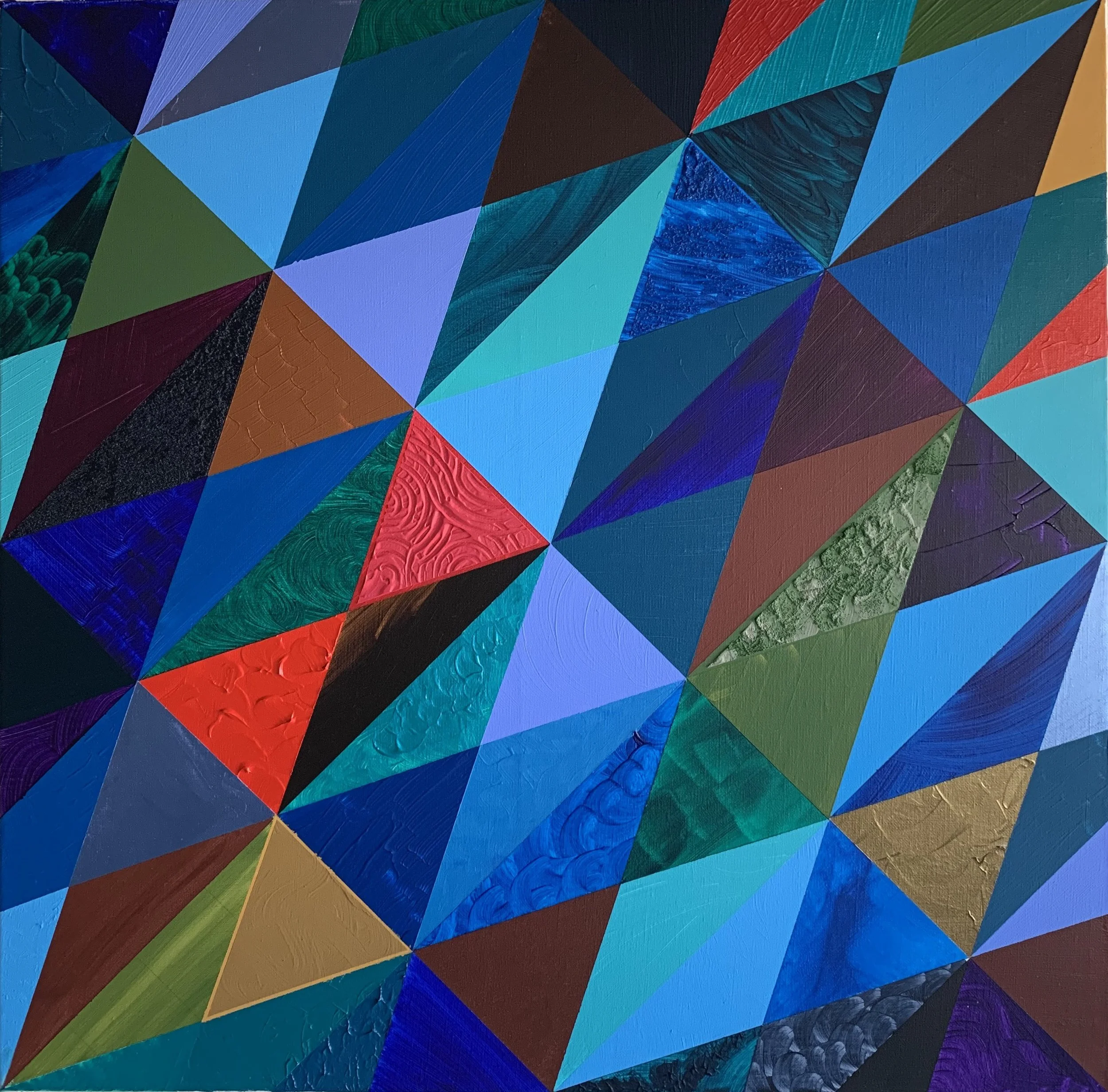 Thus, my strict simple geometric shapes combine a variety of colors and textures that seem to form on their own. And what will happen next to me, as an artist, will be very interesting to observe, because I always have a million ideas for future projects.
